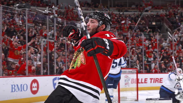 WPG@CHI: Dickinson scores goal against Connor Hellebuyck