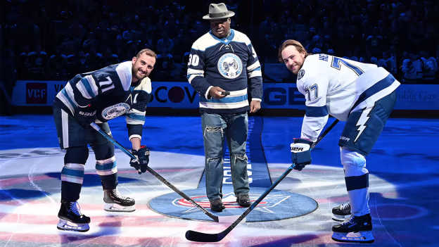 Buster Douglas drops the puck