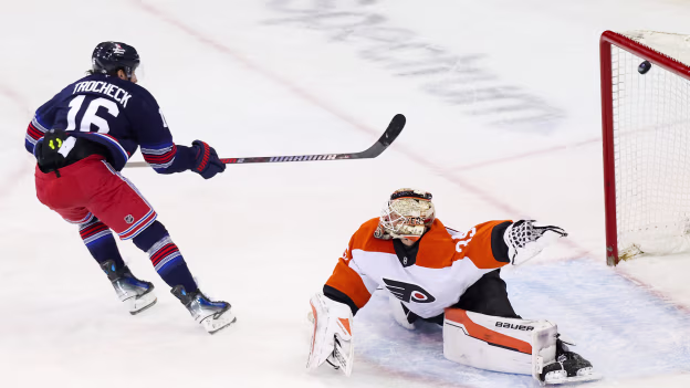 PHI@NYR: Trocheck scores SHG against Aleksei Kolosov
