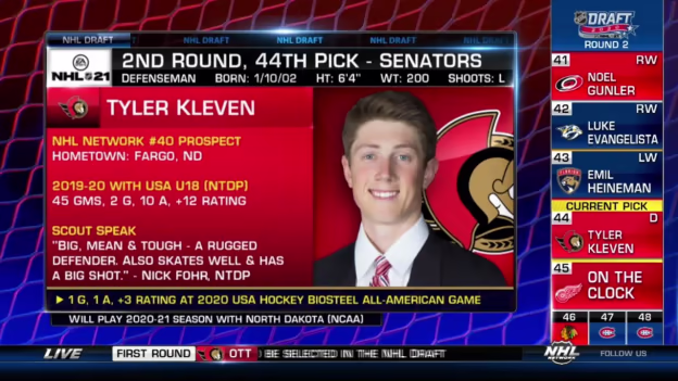 Senators trade up for Kleven