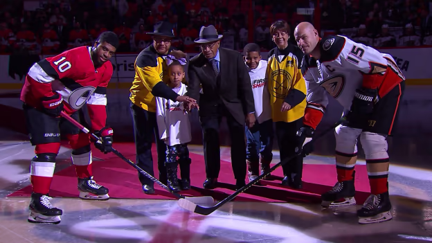 Willie O'Ree drops opening puck