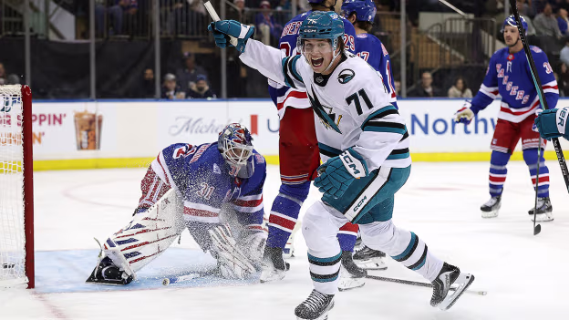 SJS@NYR: Celebrini scores goal against Igor Shesterkin