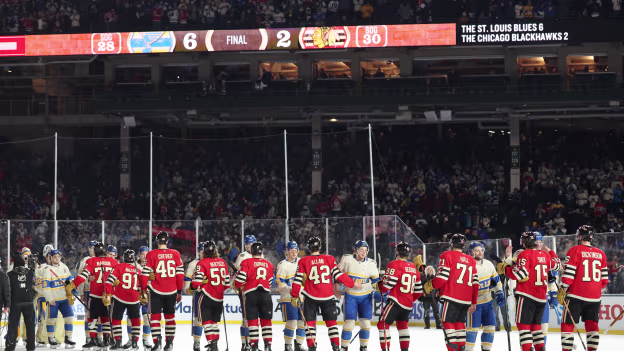 Blues, Blackhawks shake hands after 2025 Winter Classic
