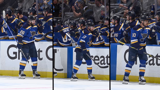 Blues tally 3 in 2:06