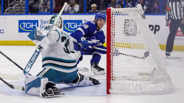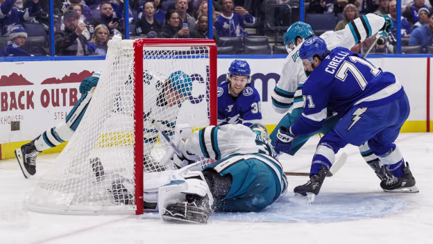 TBL@SJS: James scores goal against Alex Nedeljkovic